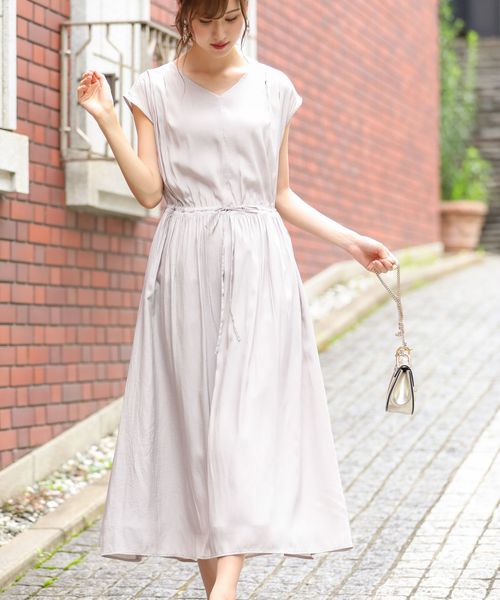 セール Tocco ワンピース ネット限定 ワンピース Closet トッコ ワンピース クローゼット のファッション ウエストりぼん付きフレンチスリーブワンピース
